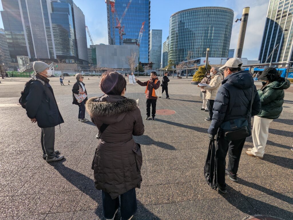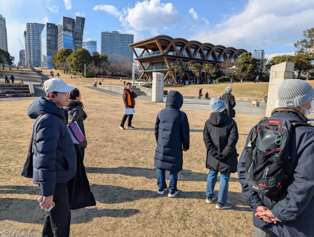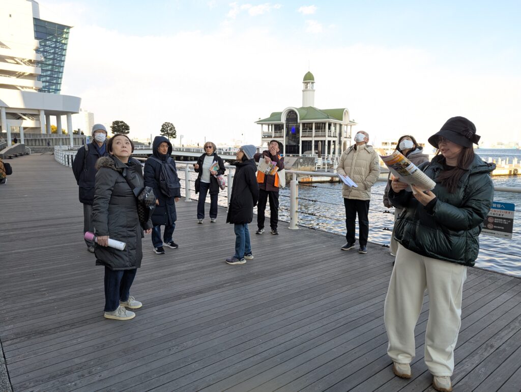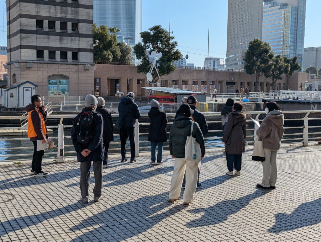 秋は天候不良で中止となったので、2回目の開催となった「みなとみらいガイドウォーク」、今回も募集開始からすぐに定員に達して、キャンセル待ちでの参加も含めて、定員いっぱいの15名での開催となりました。
